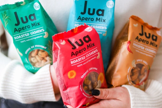 Jua propose des noix de cajou grillées aux saveurs originales, issues d’une coopérative au Burkina Faso. Grillées artisanalement sans huile et avec des ingrédients bio, elles offrent un snack sain et savoureux.